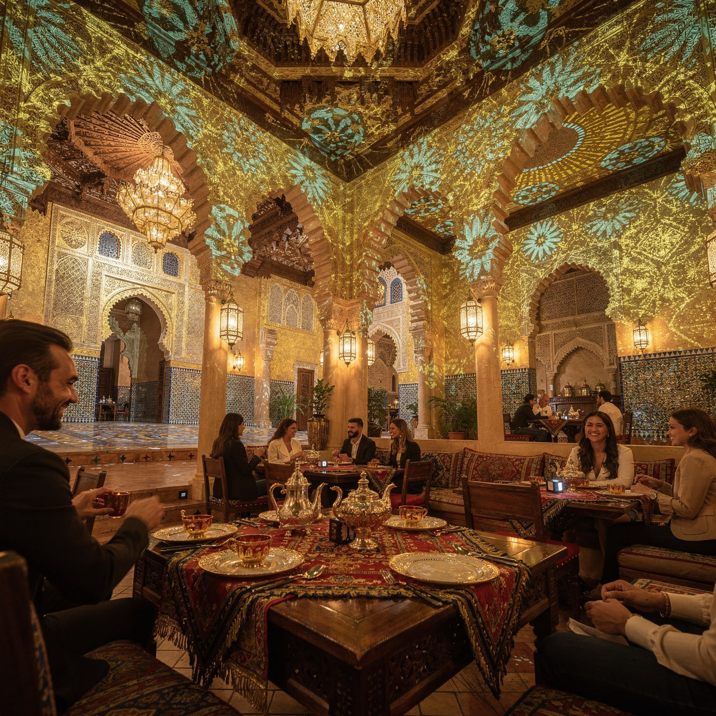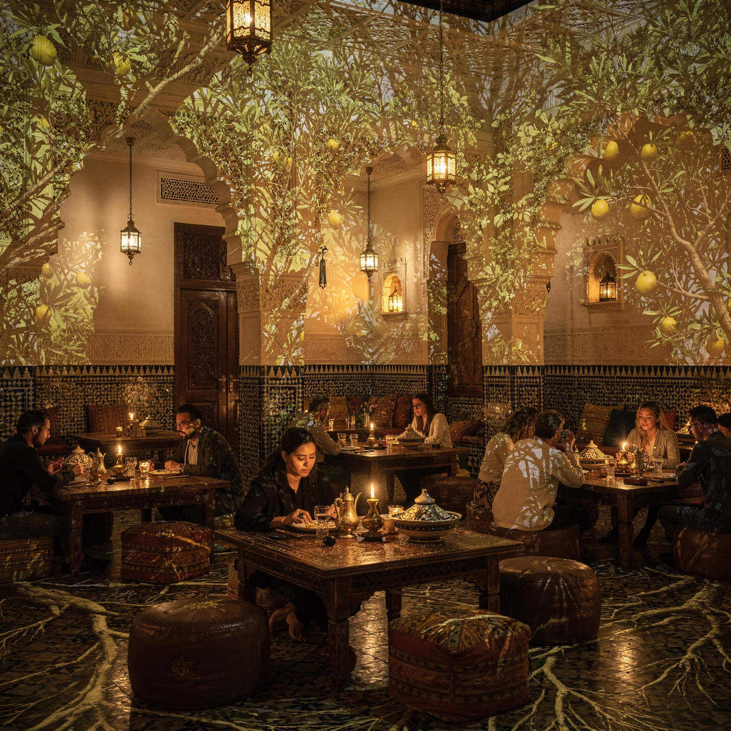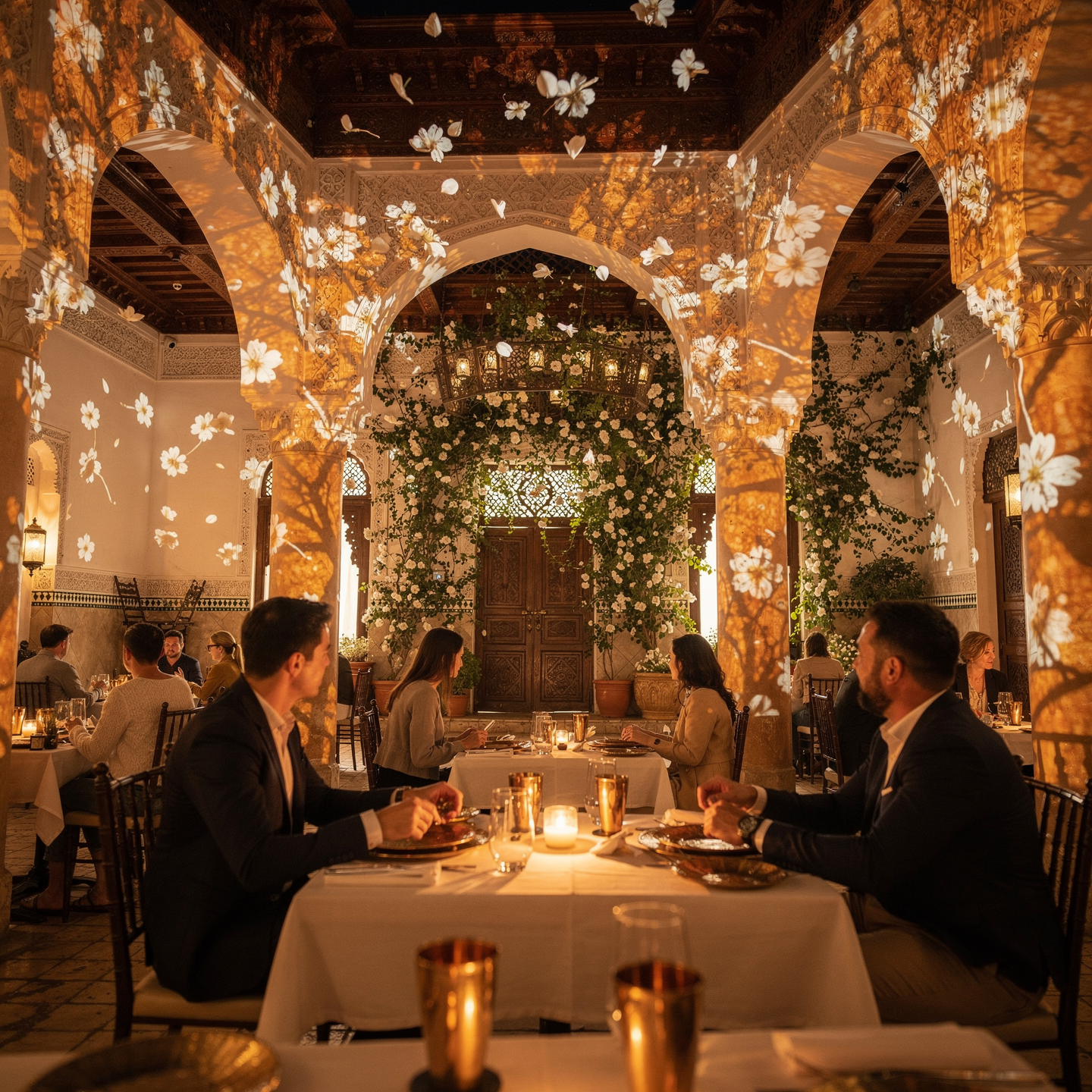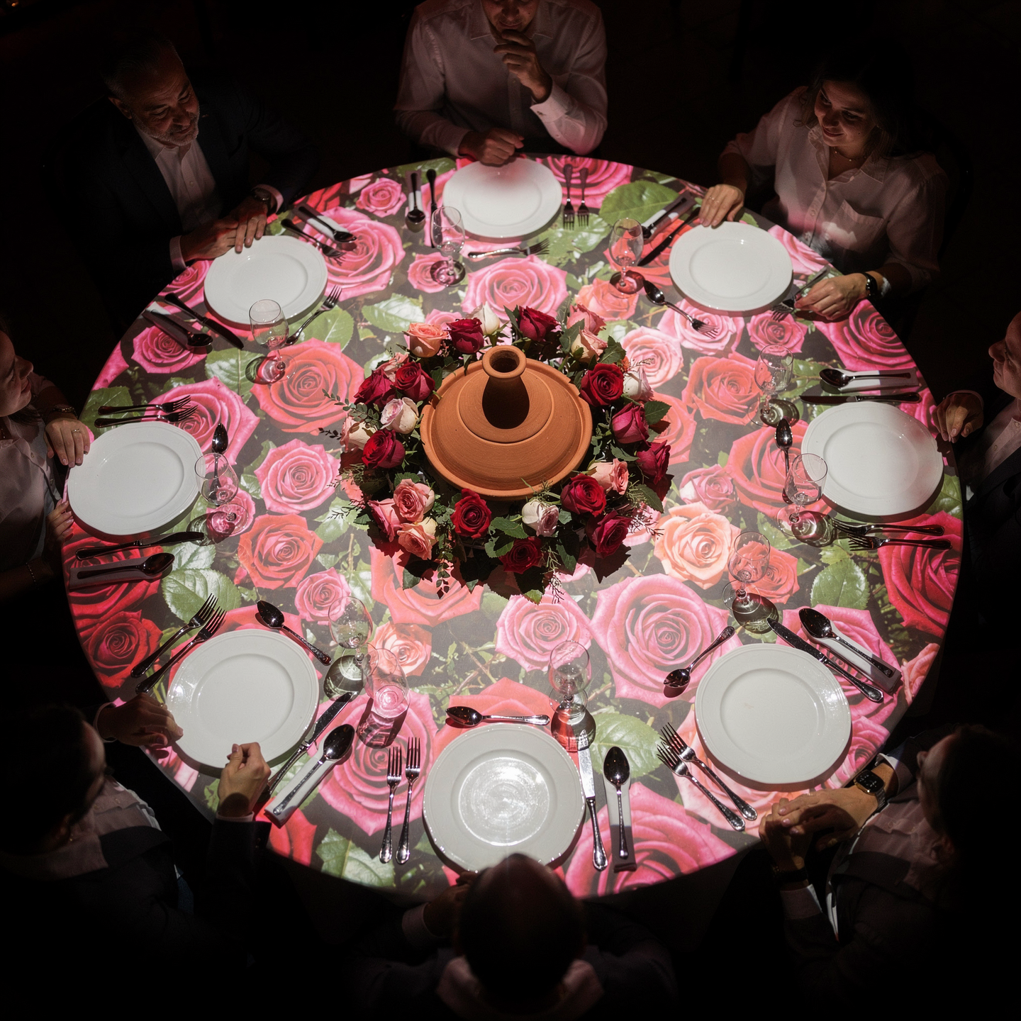 🍽️ Table mapping – Les tables deviennent des écrans interactifs : une forêt enchantée, un voyage culinaire, ou une mise en scène animée avant chaque plat.