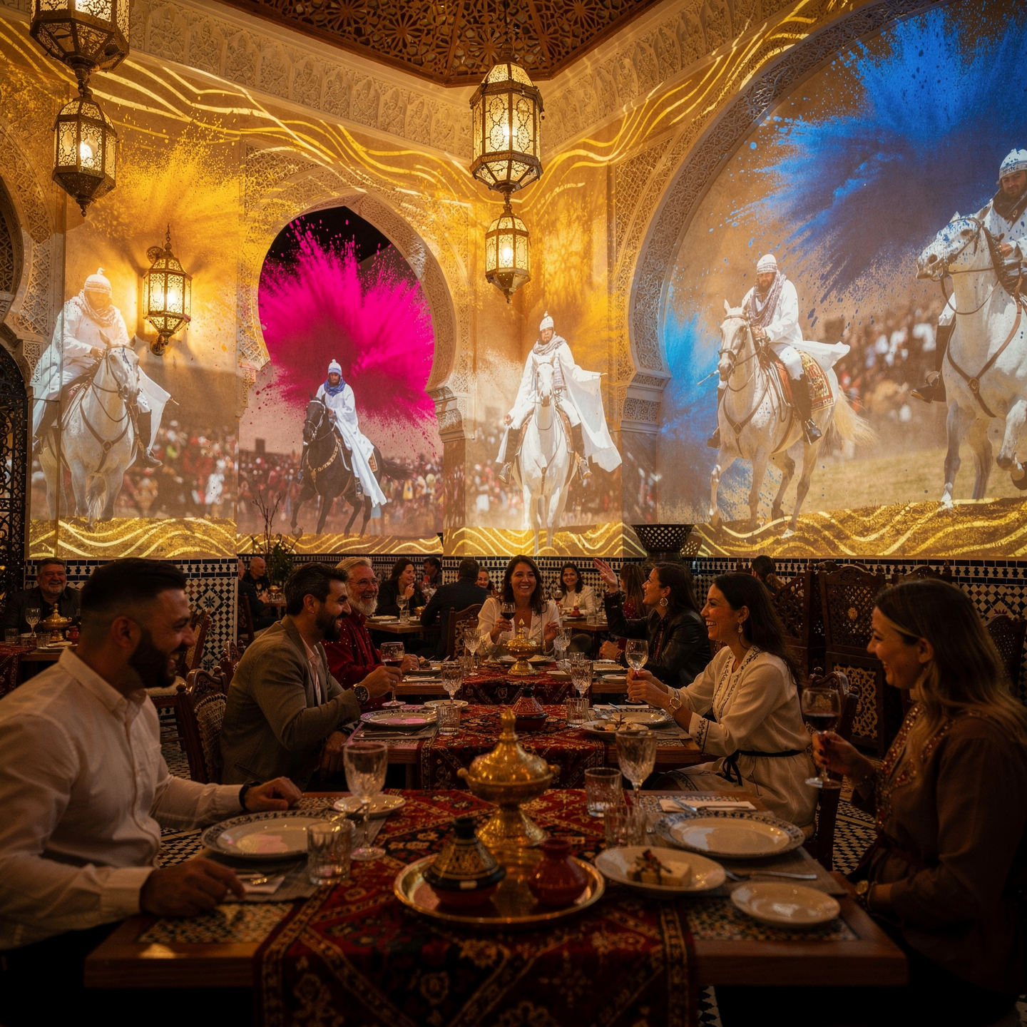 | Bistronomie / fusion | Mapping mural artistique ou ambiance de table |