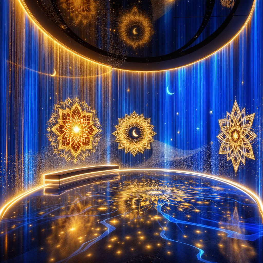 Une salle immersive est un espace entièrement transformé par le mapping vidéo 360°, où les murs, le sol et parfois le plafond deviennent des surfaces de projection vivantes.